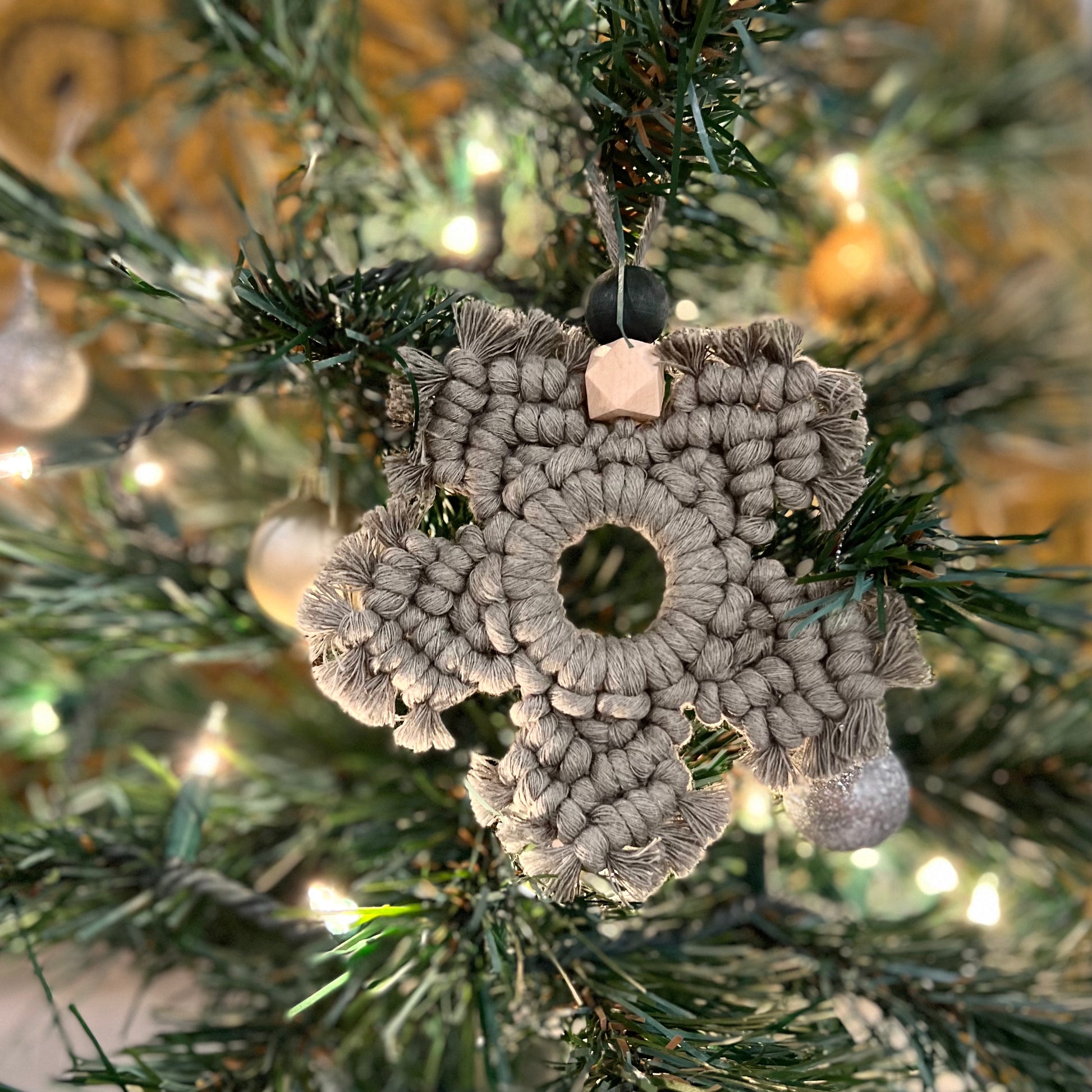 Ornament: Sage green cotton string on wood ring, 5.5 inches